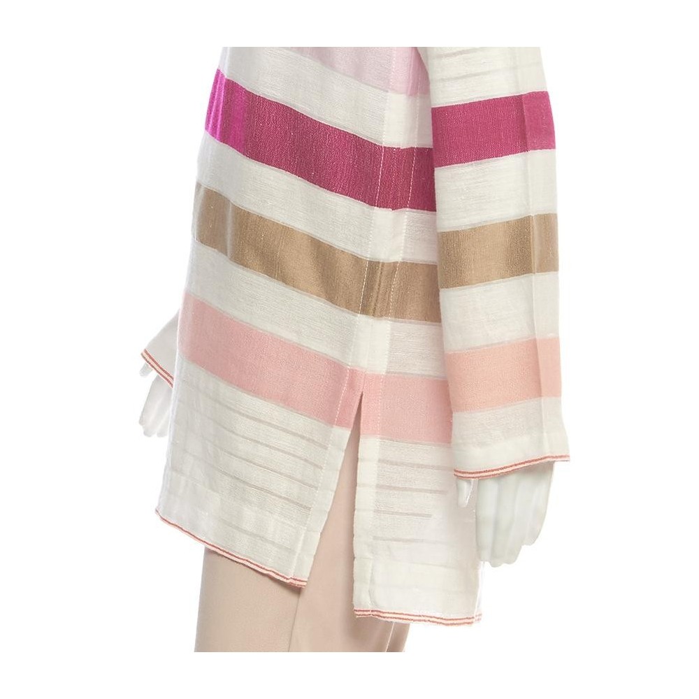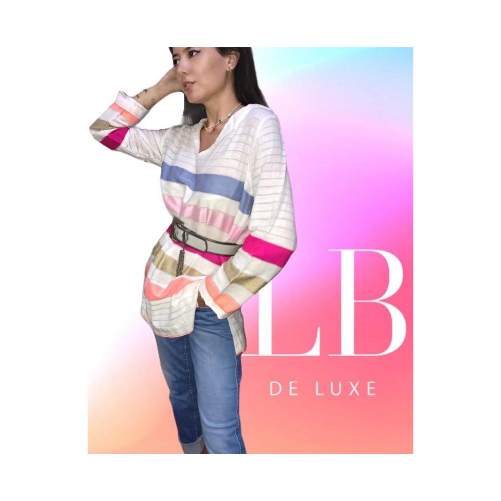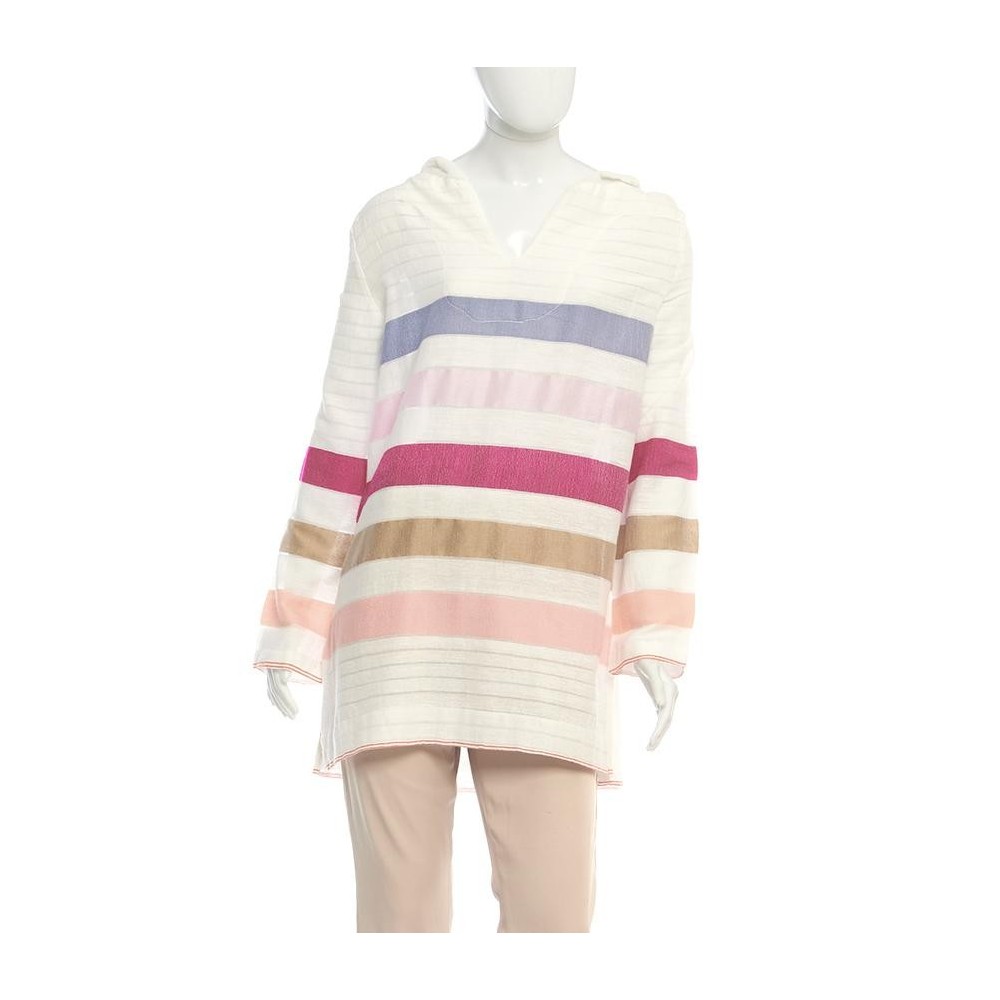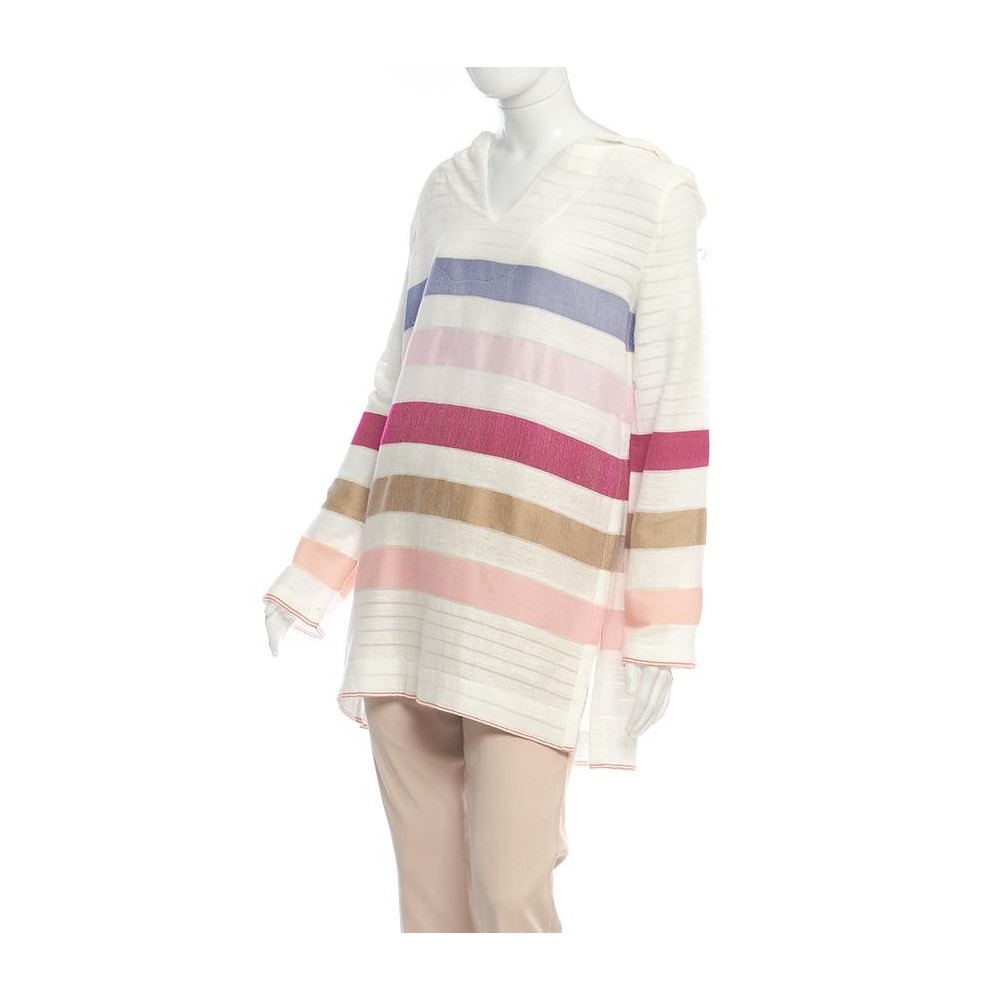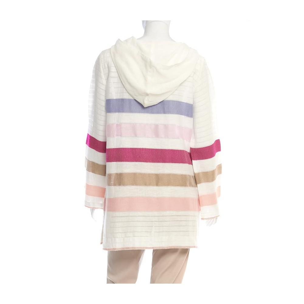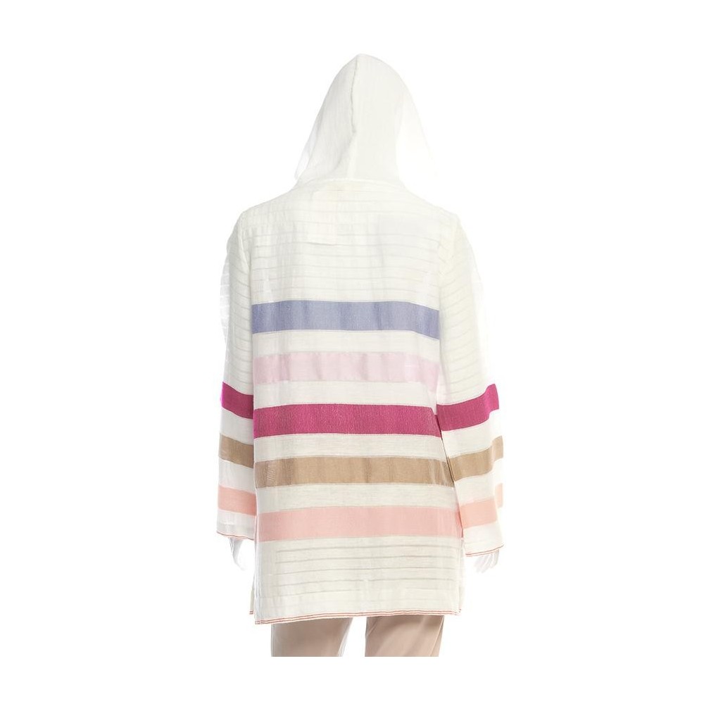 Confeccionada em 85% algodão e 15% Acrílico. Mangas longas, listrada em pink, marrom e bege. Com capuz, decote V, abertura nas laterais. Veste 40 nacional. Aparência de nunca usada.