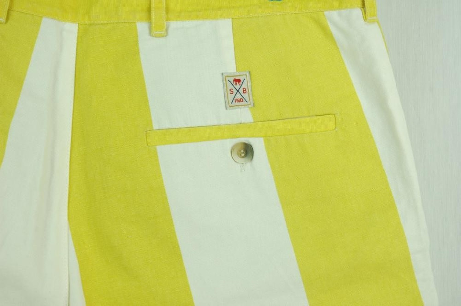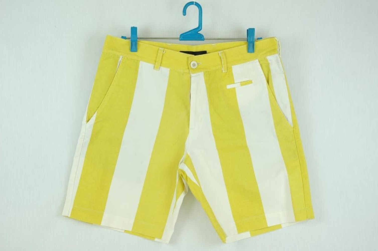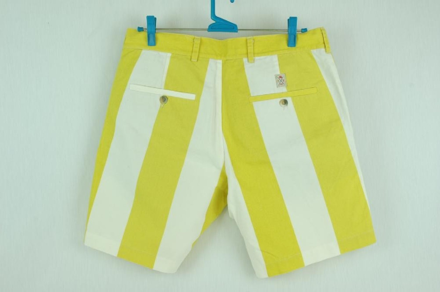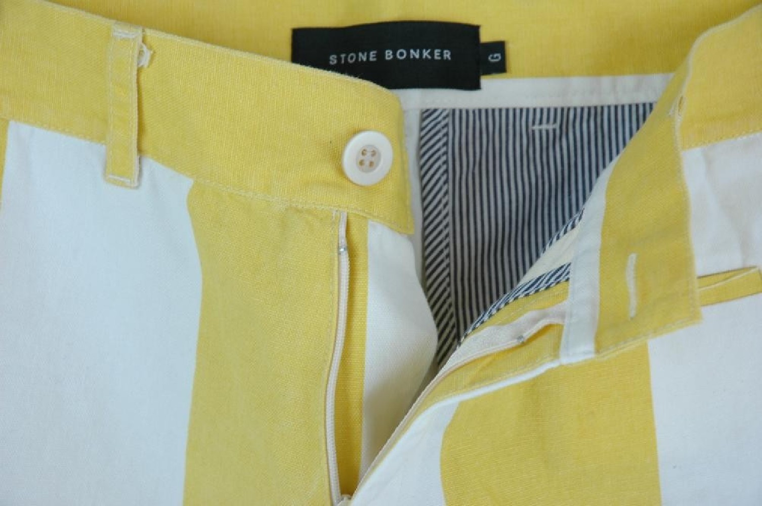Bermuda de sarja importada Stone Bonker, listras verticais em amarelo e off-white. Bolsos detrás com botões de osso. Bolsos frontais com corte faca. Nunca usado.