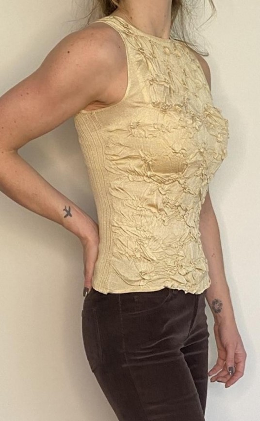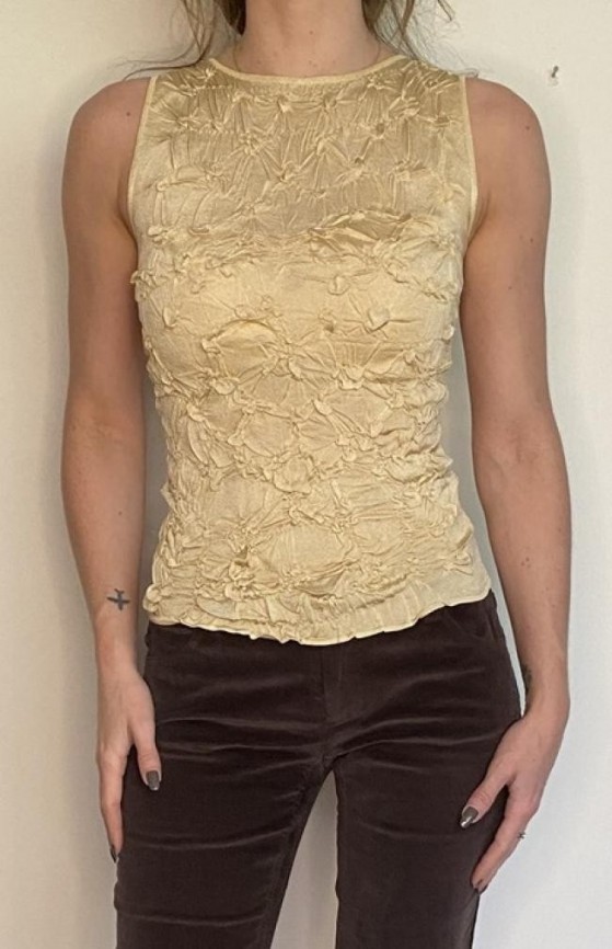 ORIGEM FRANÇA – confeccionada em seda Tussá que é composta de algodão e seda, por isso essa blusa tem tb elasticidade. Tecido suave e leve. Tamanho 40 na etiqueta, mas veste P no Brasil. Medidas aproximadas: comprimento = 55 cm; busto (sem esticar) = 64 cm ; cintura (sem esticar) = 60 cm; quadril (sem esticar) = 64 cm. Aparência perfeita. Preço na loja, aprox. 40 libras.