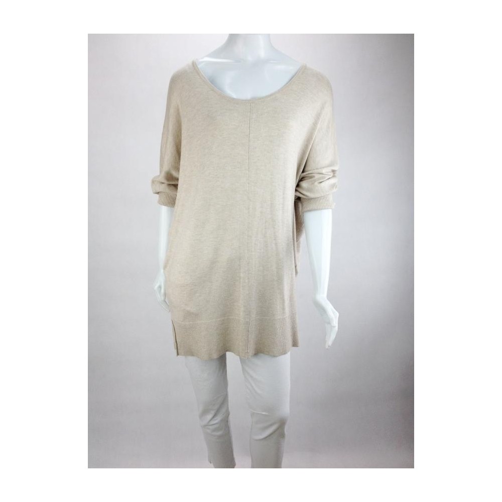 Modelagem ampla, punhas e barra sanfonados, gola careca, abertura nas laterais. Etiqueta P, veste tamanho 40. Aparência de novo.