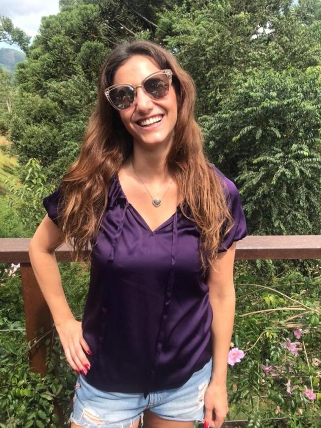 Confeccionada em 98% poliéster e 2% elastano. Saem duas tiras do próprio tecido para dar um laço. Na etiqueta, tamanho XS, mas veste P. Confira as medidas aproximadas: comprimento = 59 cm, busto = 96 cm, cintura = 95 cm.