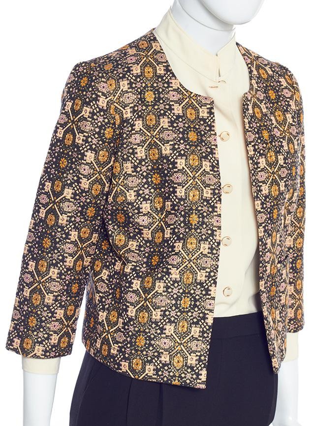 Origem : Estados Unidos. Confeccionado em 20% algodão , 69% poliéster e 11% lurex. Possui quatro bolsos frontais, modelo aberto, forrado. Tamanho M na etiqueta, veste 38/40 nacional. Medidas aproximadas : 51 cm comprimento , 45 cm largura , 45 cm manga. Aparência de novo.