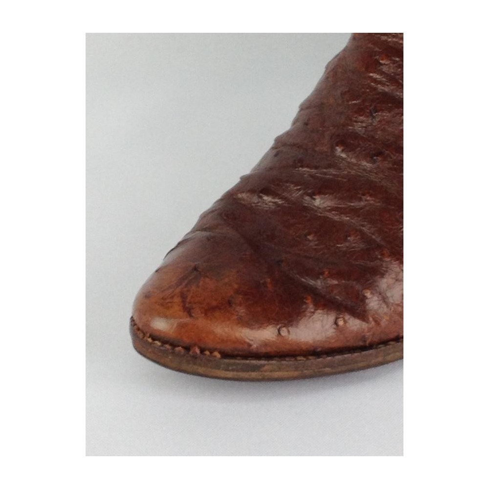 ORIGEM EUA. Tradicional marca de botas de cowboys, considerada a melhor no ramo. Bota modelo Justin Boots Antique Full Quill Ostrich Western Boots. Confeccionada em couro. Couro de avestruz na parte do pé. Estilo vintage cowgirl. Couro todo trabalhado, bordado em linha no cano e com bolinhas em relevo na parte do pé. Cabedal de couro. Toda forrada em couro. Estruturada de costura Goodyear. Genuína 3/4. Style 8927. Registro 34684F73. Acabamento interno J-Flex. Palmilha com sistema que dá conforto o dia inteiro. Bico arredondado. Sola e salto antiderrapantes. Salto 4,5cm. Pequeno desgaste na lateral da sola. O tamanho é 6E, mas calça 36,5-37 no Brasil. Na parte interna da bota, está impressa a marca no couro. Feita à mão. Ela é usada, mas maravilhosa !!! Preço aprox. na loja, 590 dólares.