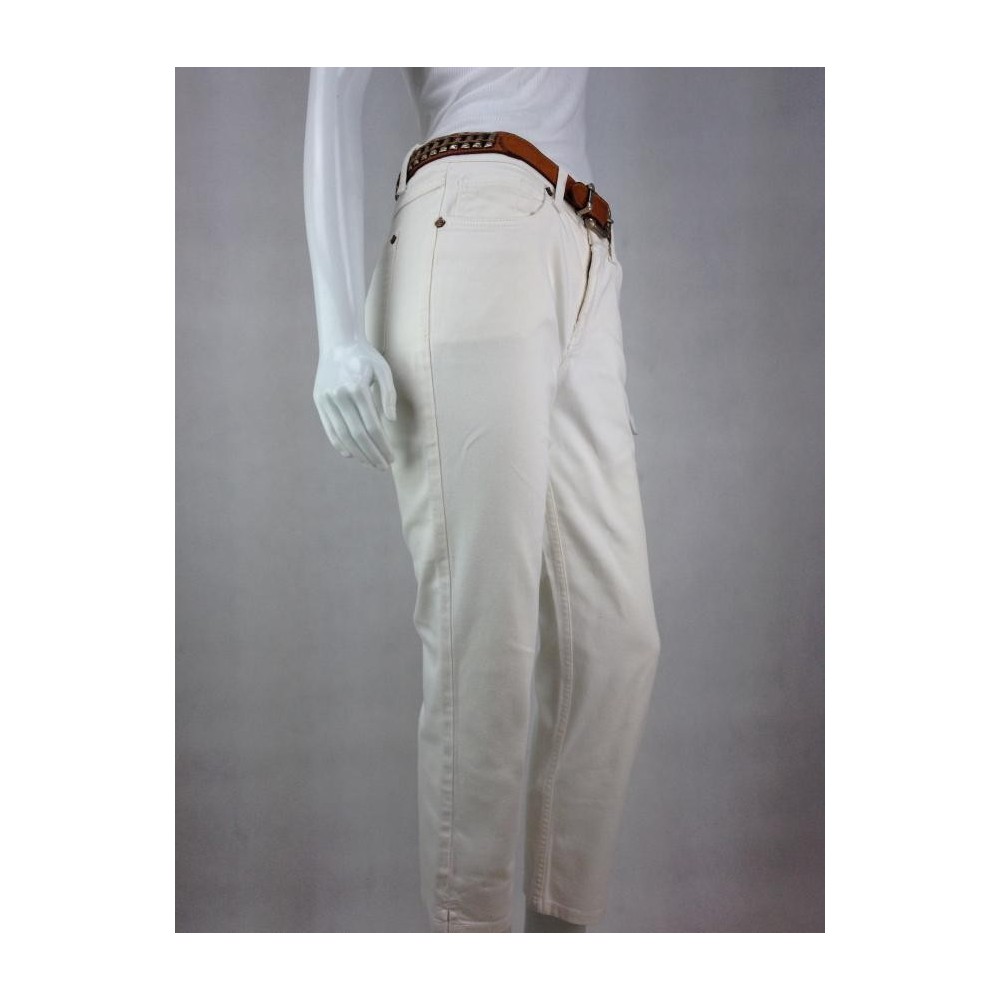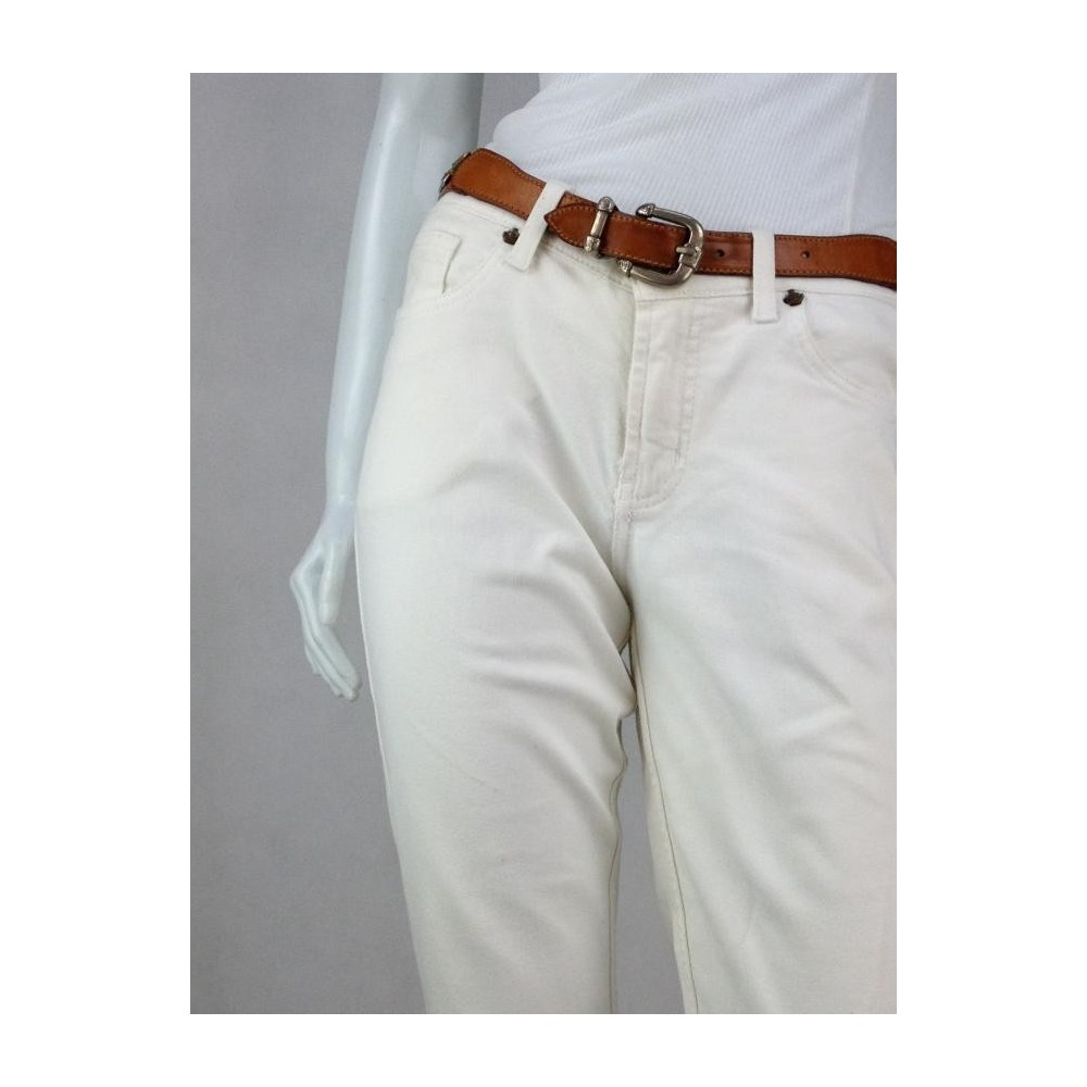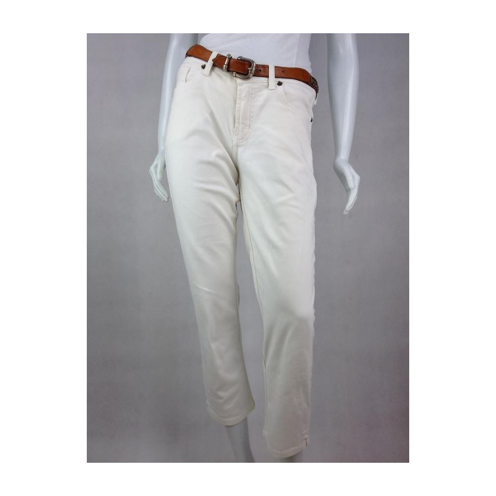 Duas aberturas na barra. Logo da marca nos bolsos. Calça mais curta e reta. Aparência de nova. Algodão 98%. Elastano 2%.