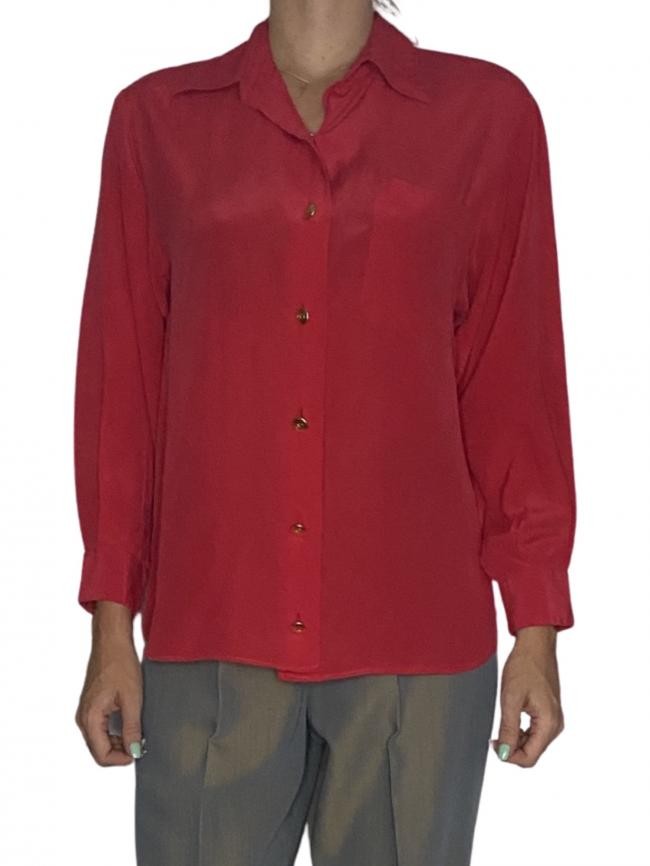 Confeccionada em 100% seda. Super rara de se encontrar esse modelo vintage: Modelo Blouse V logo Button Vintage.. Botões com o V gravado em dourado, inclusive nos punhos. Obs: está faltando o primeiro botão da gola (o que menos se usa) Tem tb um fio mínimo descosturado embaixo da cava. Um bolso. Tamanho 46 na etiqueta, mas confira as medidas aproximadas: comprimento = 71 cm; busto = 96 cm; cintura = 98 cm; quadril = 102 cm. Aproximadamente 44/42 no Brasil. Na etiqueta interna: Valentino Les Blouses.