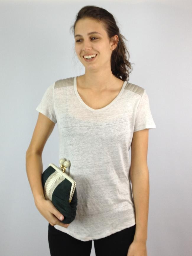 Camiseta cinza de linho com ombreira, Zara. Tamanho M.