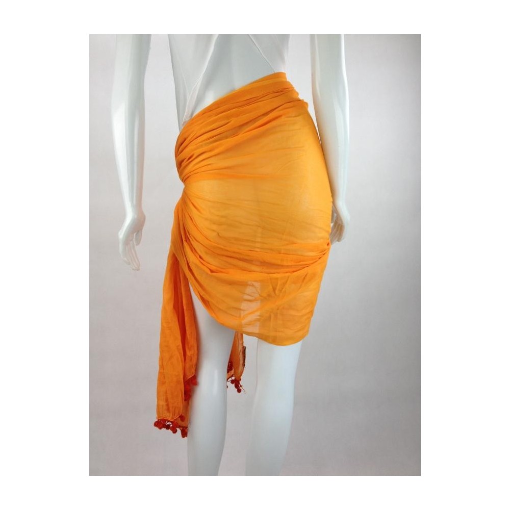 Canga com detalhes em pompons nas laterais. Aparência perfeita. Tamanho 200X94cm.