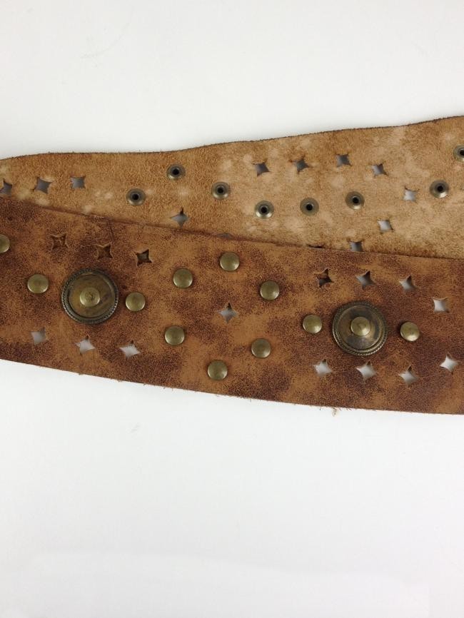 Ferragens e detalhes em ouro velho. Couro super macio. Largura 6 cm. Comprimento 98 cm. Fivela 9 cm.