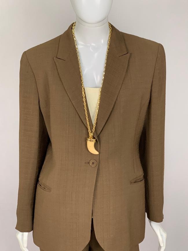 Colar com corrente em elos dourado. Pingente de dente fake. Medida aproximada da corrente : 86 cm. Obs : Alguns desgastes no pingente.