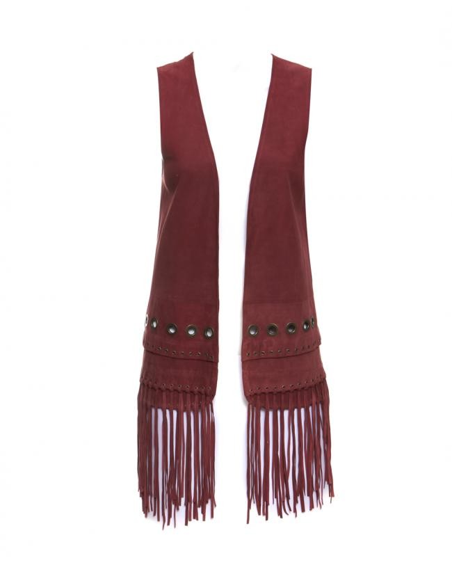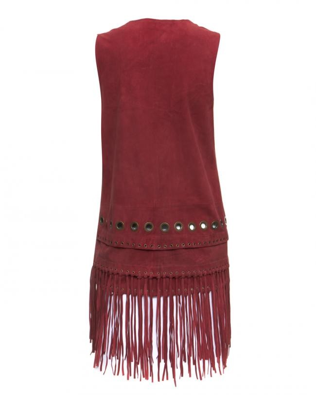 Confeccionado em 100% camurça. Longo, com ilhoses e franjas. Muito charmoso. Aparência perfeita. Tamanho 40 na etiqueta, mas deve servir em vários tamanhos. Confira as medidas aproximadas: 70 cm mais 21 cm de franjas, busto = 96 cm, cintura = 98 cm, quadril = 104 cm.