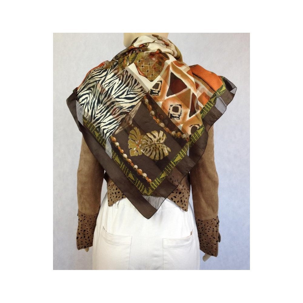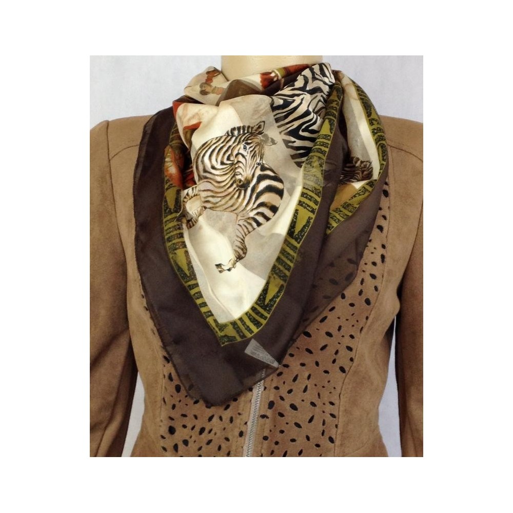 IMPORTADA DA ITÁLIA,Estampa com tons de marrom, mostarda, zebra, preto e branco. Algumas manchinhas de guardado. 100% poliester.