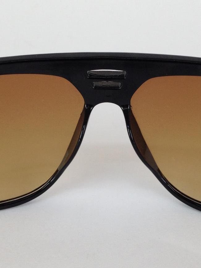 Óculos em acetato marrom com detalhes em dourado. Lente degrade marrom. P8791-CE.