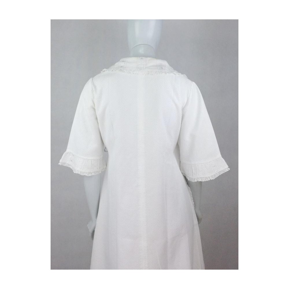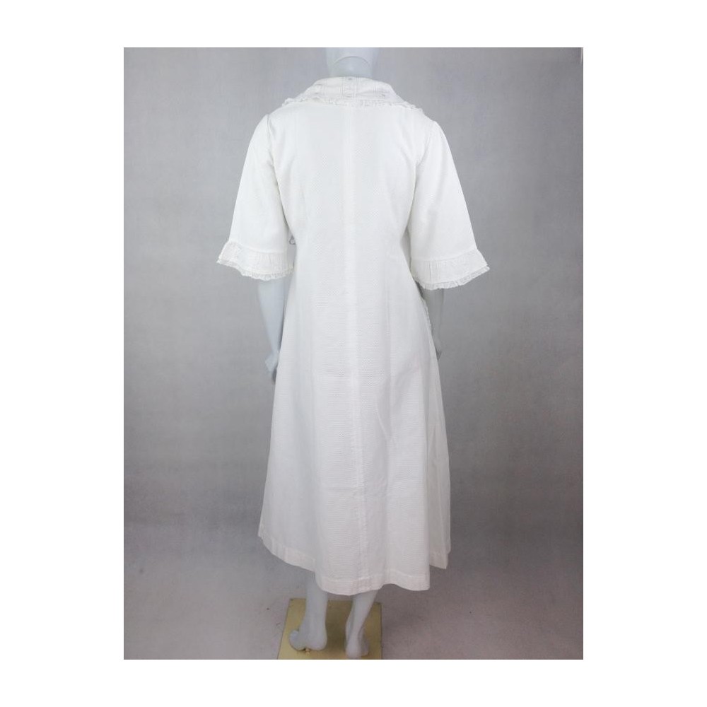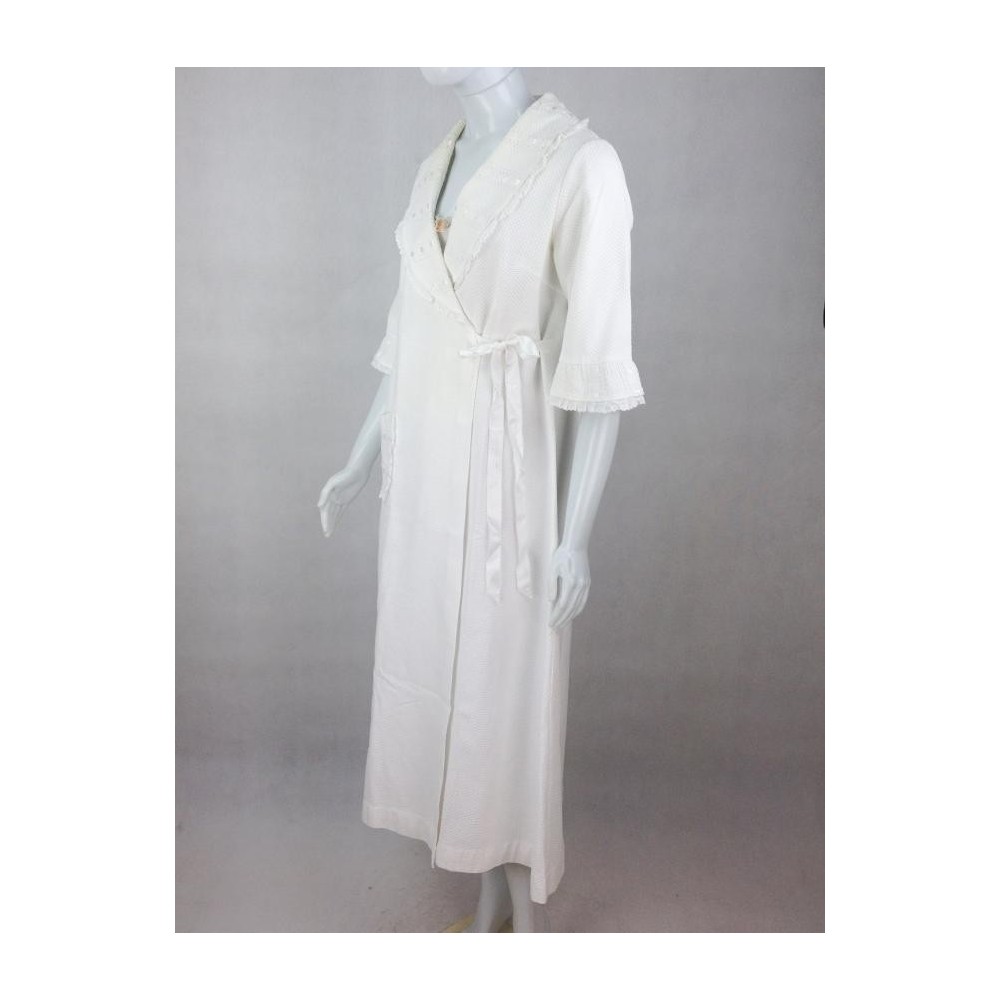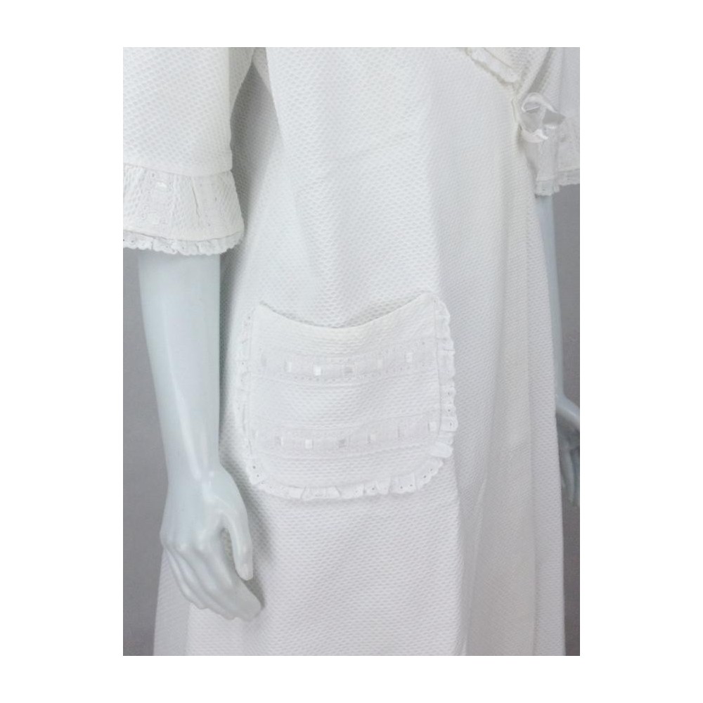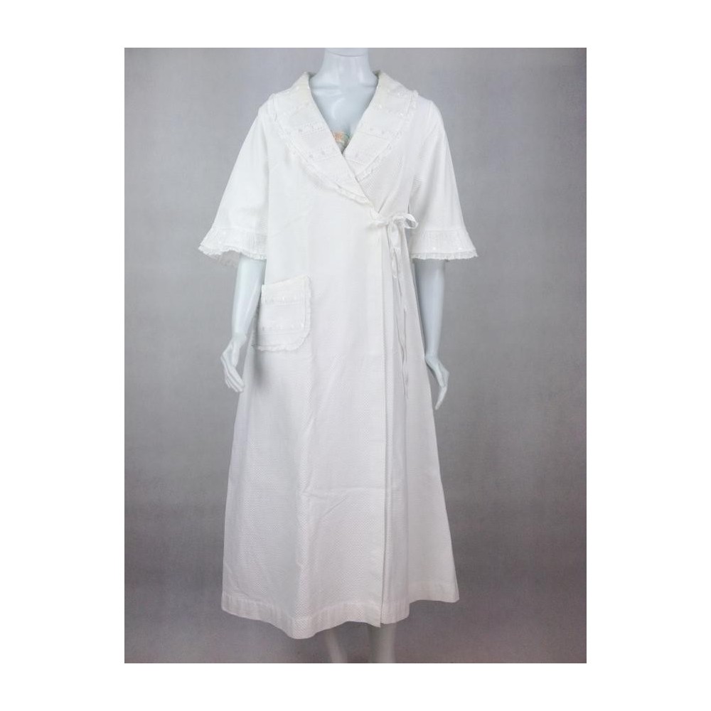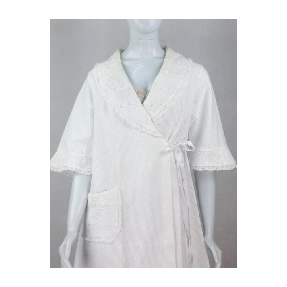 Robe transpassado com passamanaria com fita de cetim branca, detalhes nas mangas em laise bordado. Um bolso na lateral. Aparência de novo.