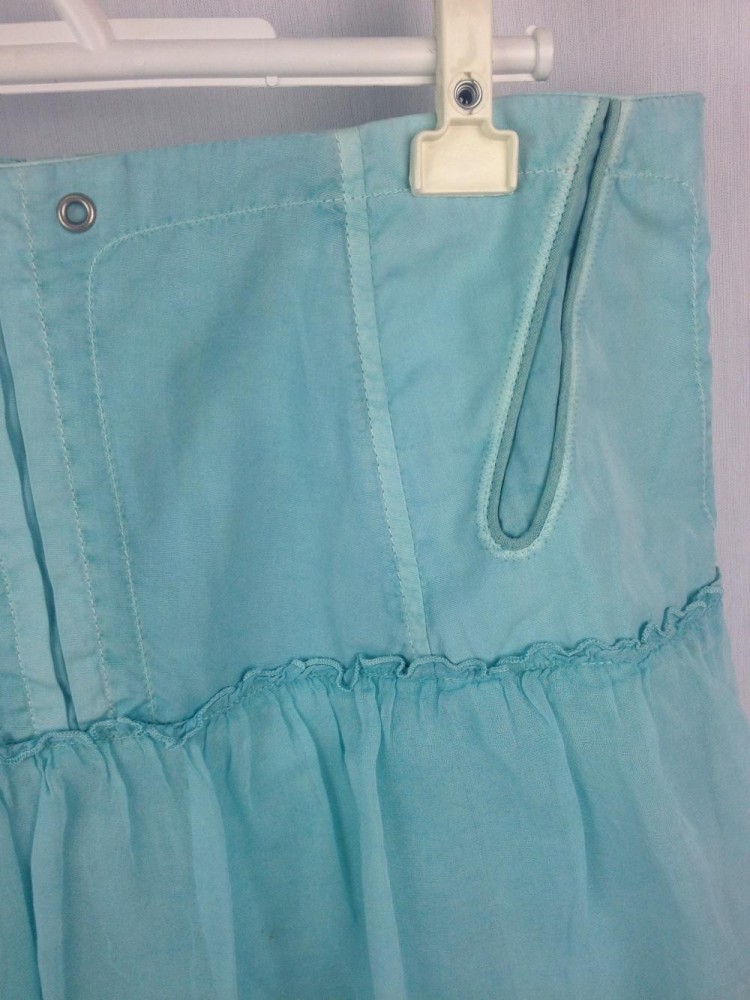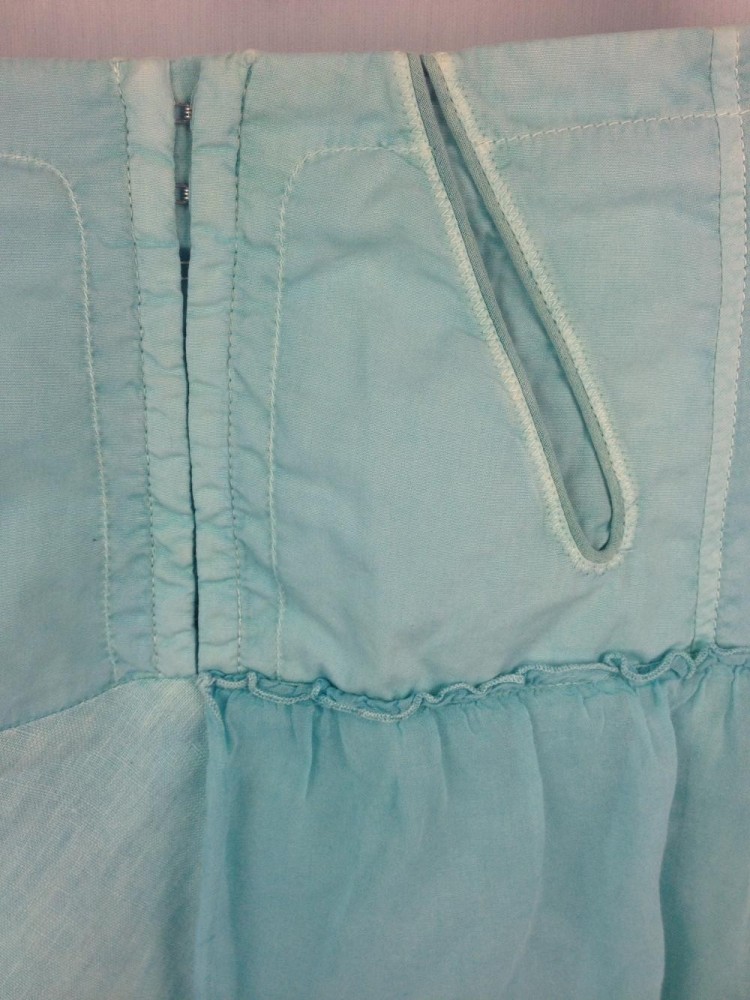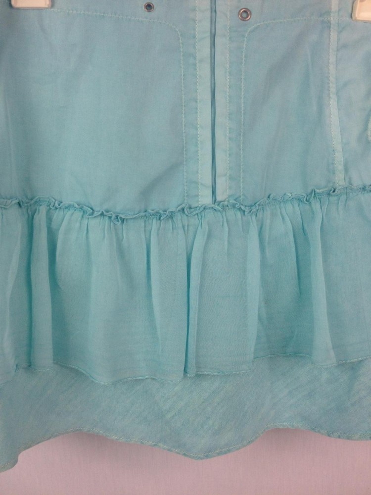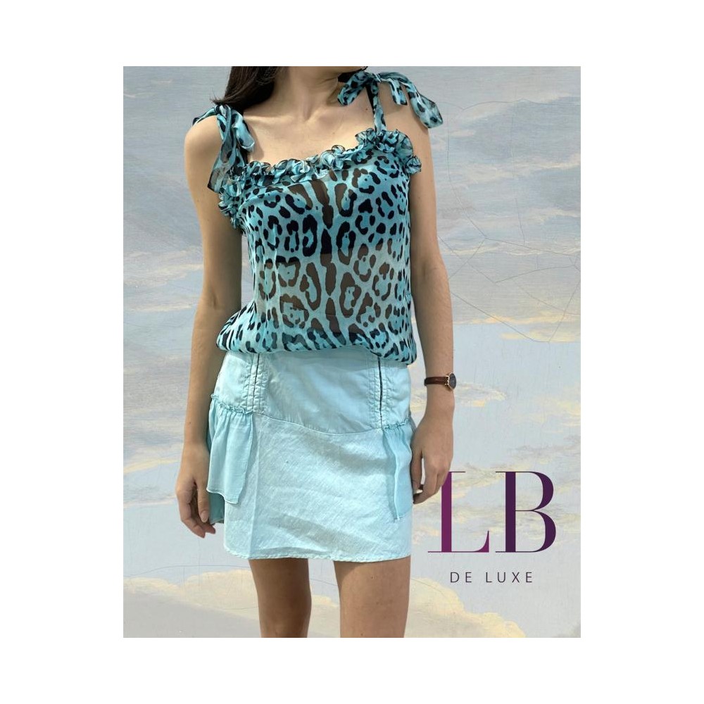Saia Curta Armani Exchange azul, confeccionada em 100% algodão na parte de cima e 100% linho no corpo da saia. Assimétrica, dois bolsinhos com roloté. Colchetes para o abotoamento lateral com um babado transparente em cima do tecido de linho. Tamanho 10 na etiqueta, mas veste M no Brasil. RN# 91714. Medidas aproximadas: comprimento = 35/37 cm, cintura = 86 cm, quadril = 98 cm. IMPECÁVEL !