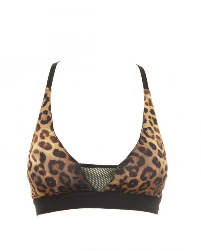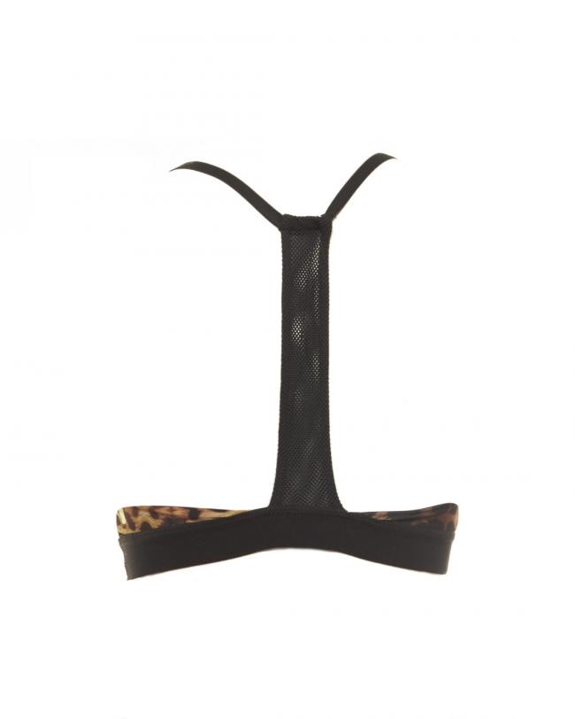 Você pode usar dos dois lados, animal print ou preto. Tem bojo e telinha. Essa telinha também está dividindo as alças que são de elástico. Aparência de novo. Acompanha a embalagem original. Preço na loja, R$ 300,00.