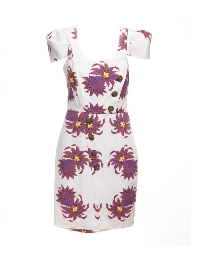 Confeccionado em 100% algodão. Império ref.: 2819129. Peça de edição limitada e produzida artesanalmente. Forrada, botões como enfeite, zíper invisível na lateral. Medidas aproximadas: comprimento = 97 cm mais 2 de bainha, busto = 88 , cintura = 76 cm, quadril = 92 cm.