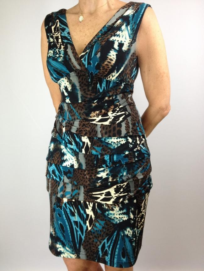 Vestido Animal Print Connected Petit, turquesa, marrom e preto, tamanho 40, Made in Sri Lanka, 96% poliester, 4% spandex.