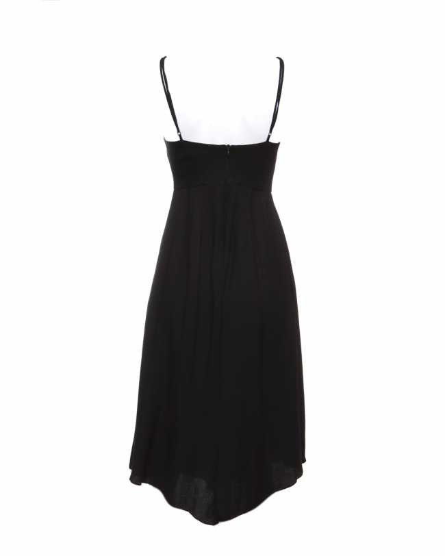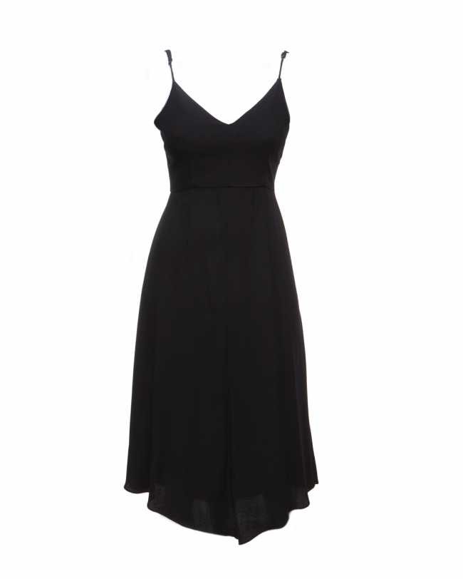 Confeccionado em 100% viscose. O modelo é evasé, portanto, o quadril é mais largo. Alças reguláveis, tecido duplo no busto. Zíper atrás, Impecável!