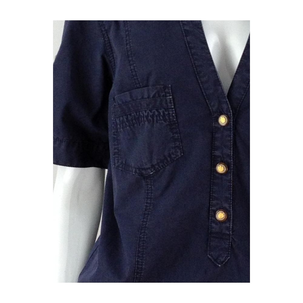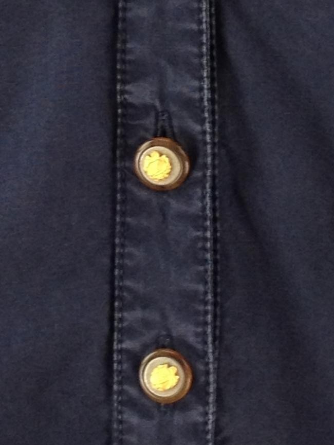 Botões com o logo da marca, elástico, soltinho no quadril. Aparência de novo. Quatro bolsos.