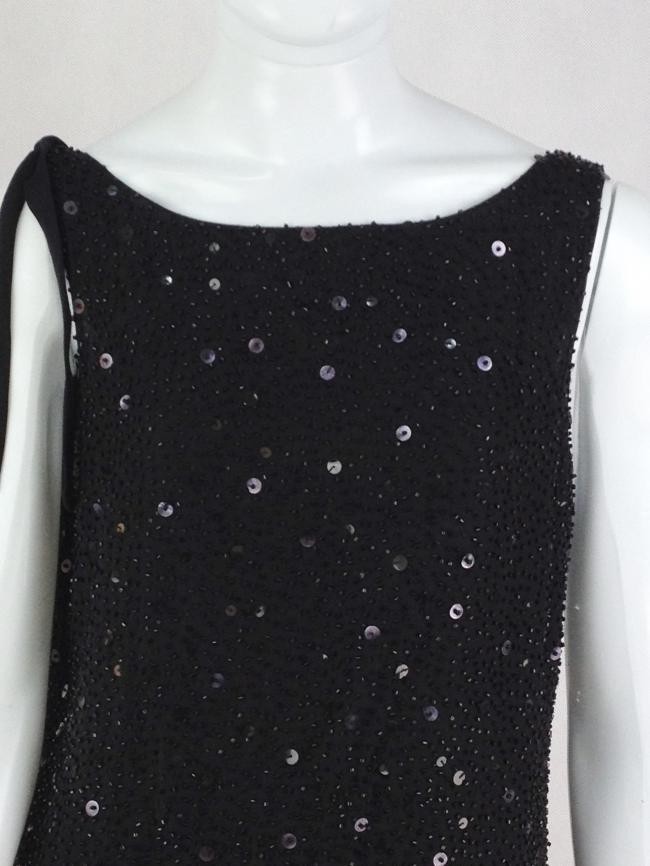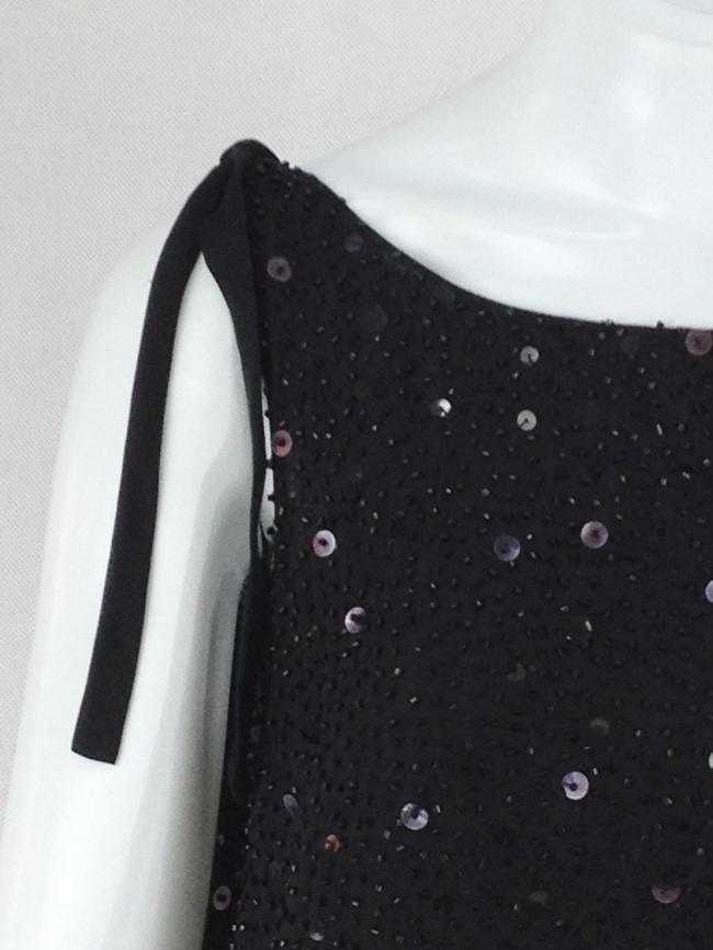 Sem etiqueta de composição, mas parece ser crepe de seda. Decotado nas coisas, fita de seda em uma das mangas. Forrado, soltinho. Na parte interna do forro há algumas manchinhas e uma pequena descostura próximo a uma das alças. Aparência externa ótima.
