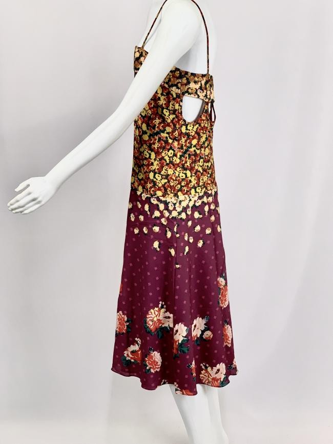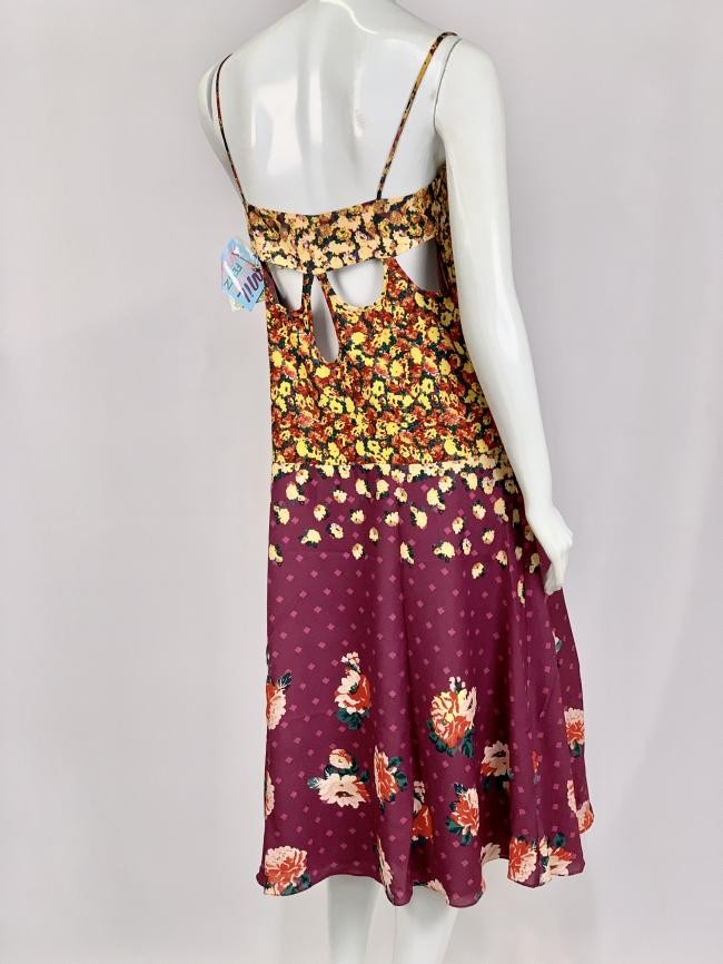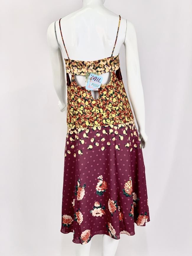Confeccionado em 100% poliéster. Código na etiqueta 216532. Possui alças, parte da saia evasé. Forrado. Na parte posterior possui detalhes vazados. NOVO COM ETIQUETA. Disponíveis nos tamanhos P e M.