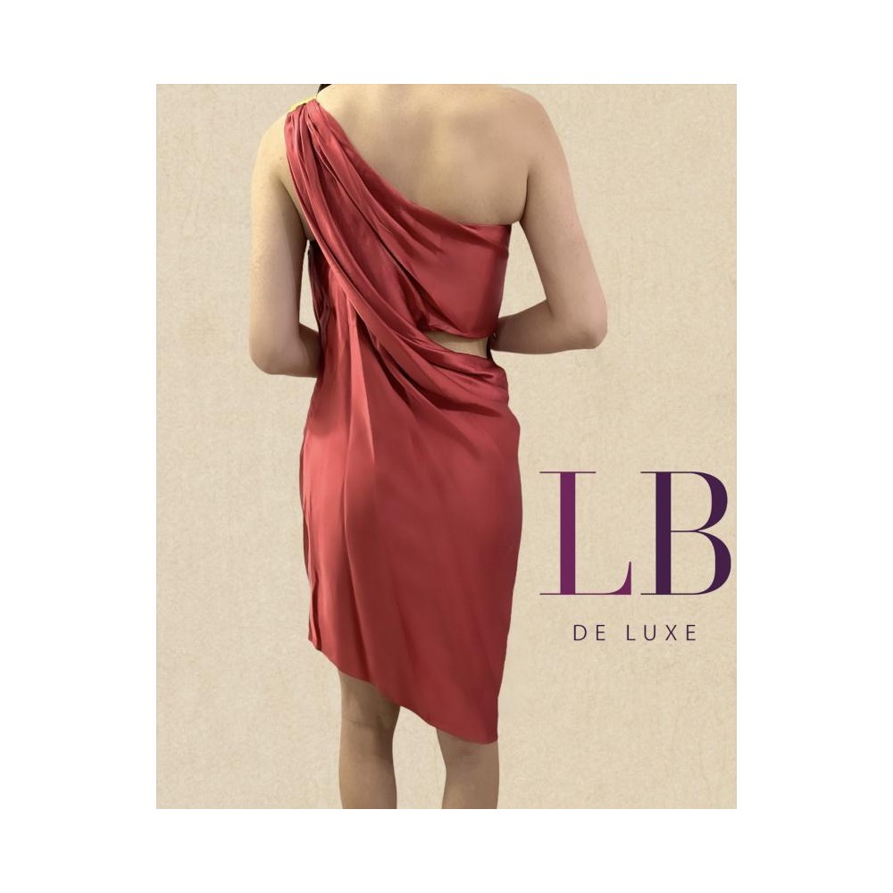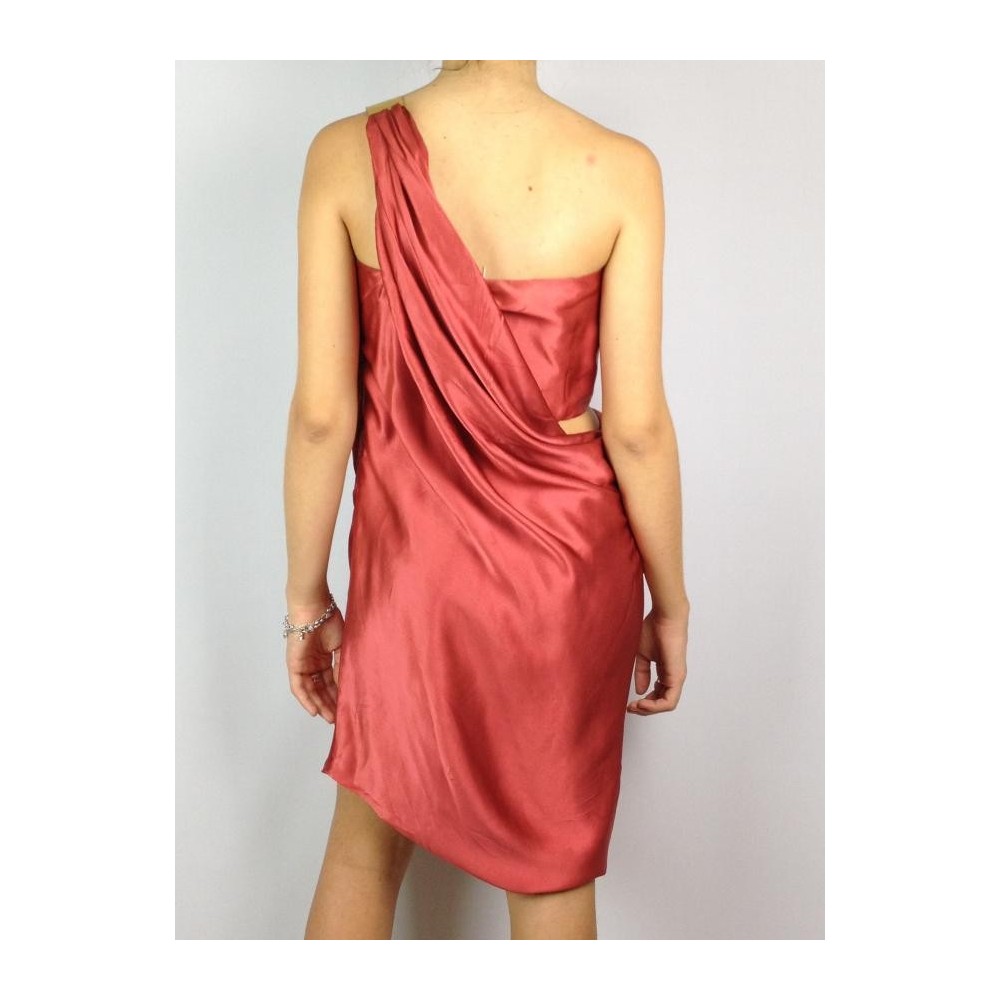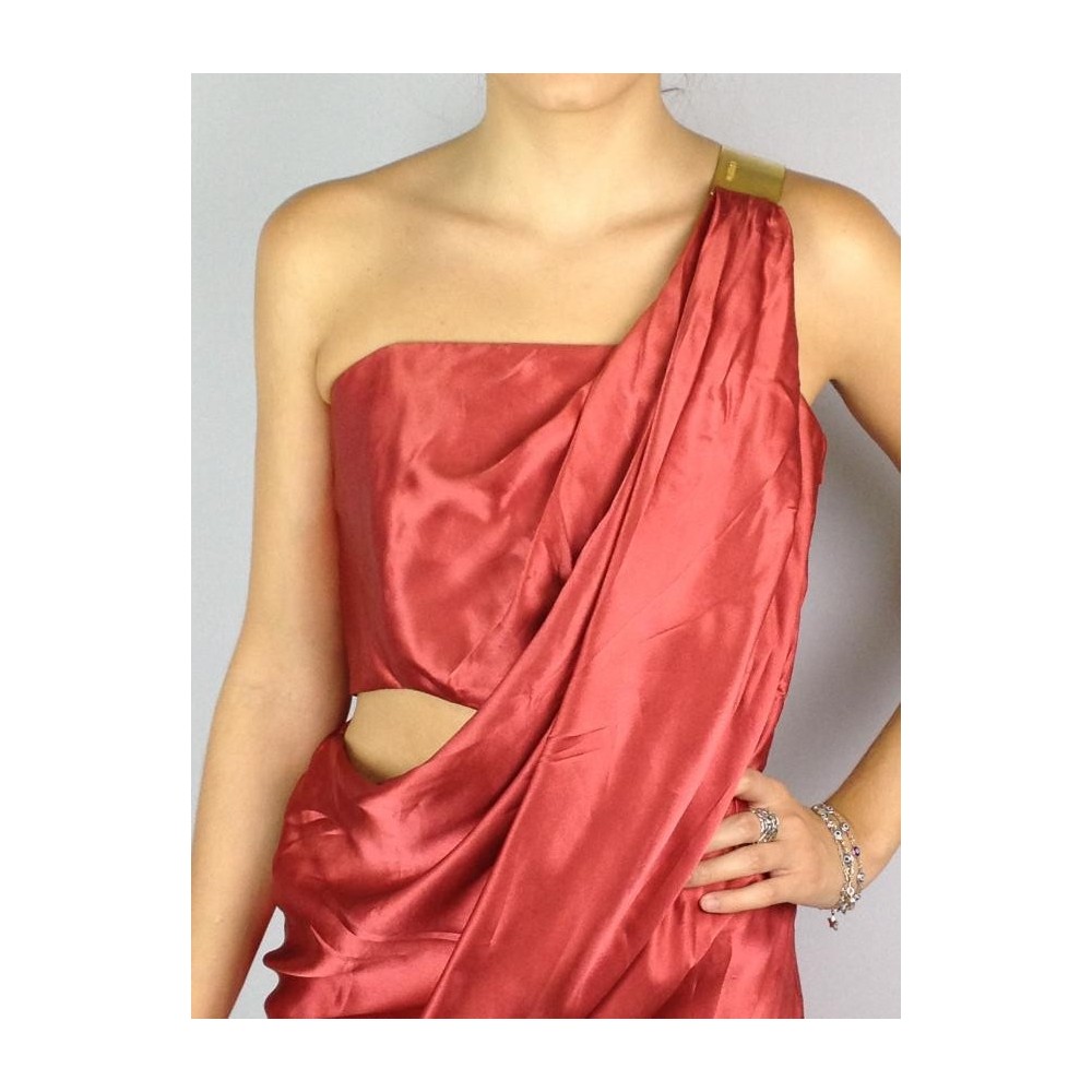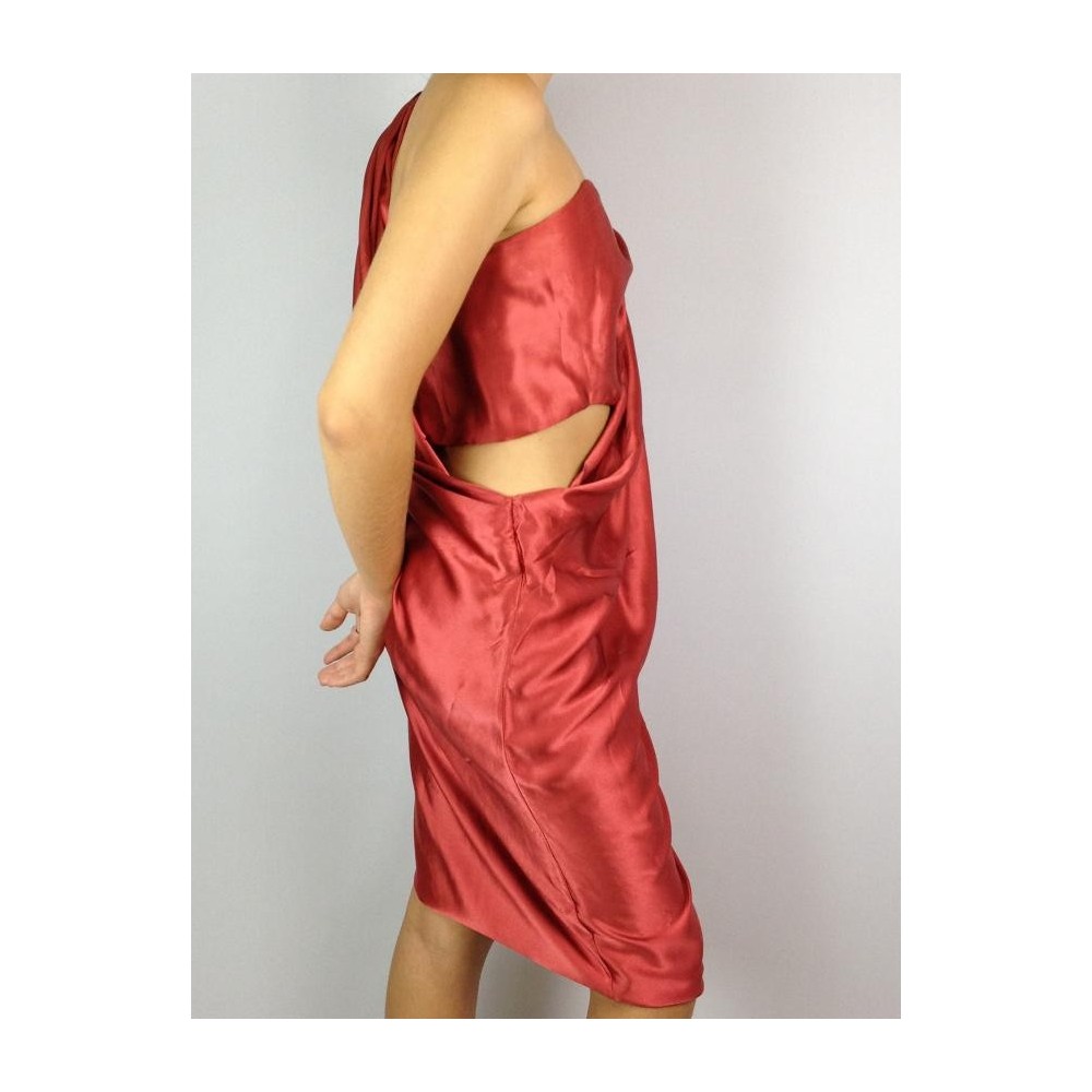 100% seda, forrado, busto com estrutura, alça drapeada com placa dourada no ombro com a inscrição Forum, assimétrico em perfeito estado. Medidas aproximadas: busto = 80 cm; cintura = 84 cm; quadril = 90 cm.