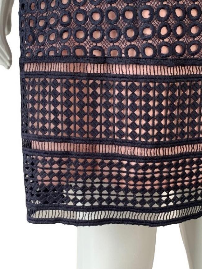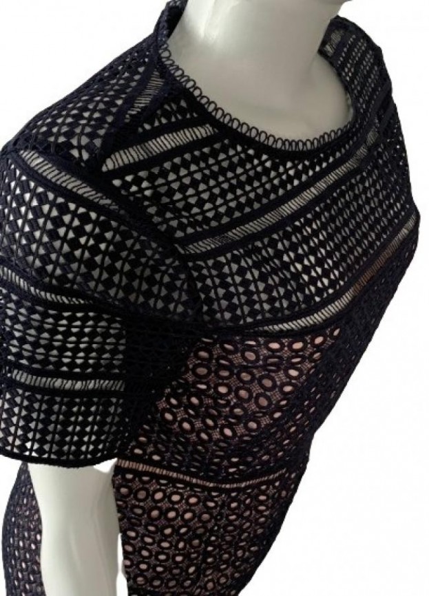 ORIGEM UK – Confeccionado em rendas de crochê, forro nude, foi ajustado e está impecável. Medidas aproximadas: comprimento = 90 cm; ombro = 38 cm; busto = 88 cm; cintura = 80 cm; quadril = 92 cm. Aparência excelente.