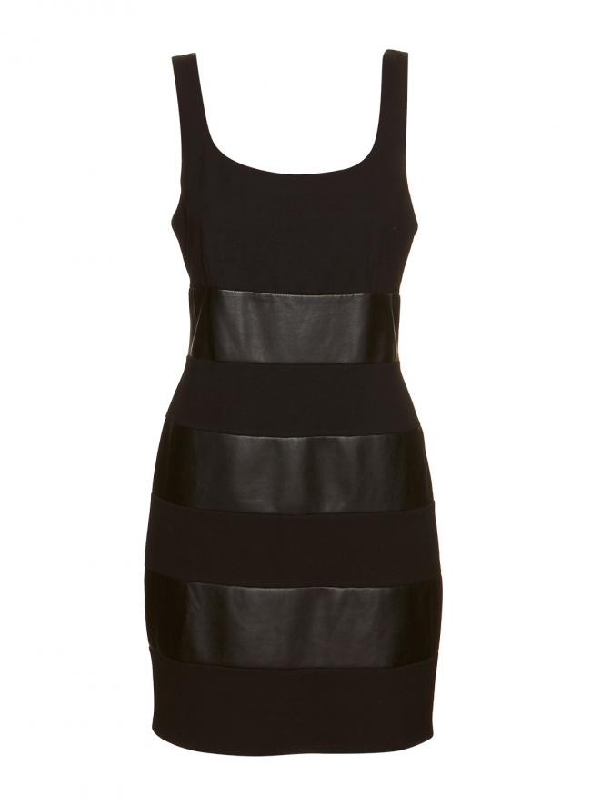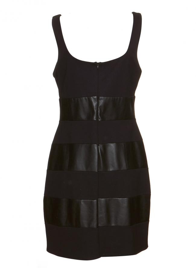 Confeccionado em tecido e couro. Possui fechamento por zíper na parte posterior. Forrado. Veste 40 nacional. Medidas aproximadas : 91 cm comprimento, 92 cm busto, 102 cm quadril. APARÊNCIA DE NOVO.