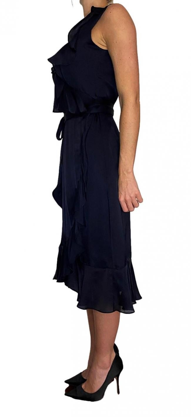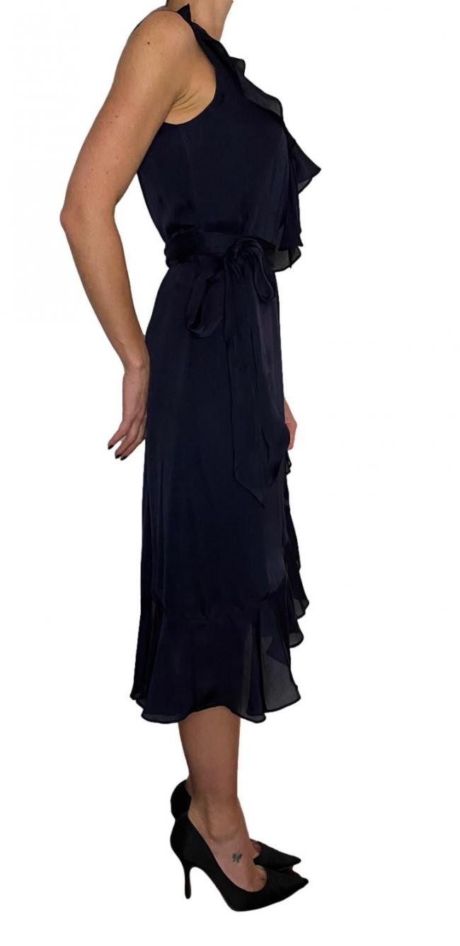 ORIGEM EUA – Confeccionado em 100% seda com babados em crepe de seda. Transpassado, por isso veste P e M (ele se ajusta ao tamanho). Confira as medidas aproximadas: comprimento = 113 cm; busto = 94 cm; cintura = 88 cm; quadril = 112 cm. Tamanho 10 na etiqueta. Obs.: colocaram alcinha para segurar o sutiã e colchetes de gancho no decote na parte interna. Aparência perfeita!