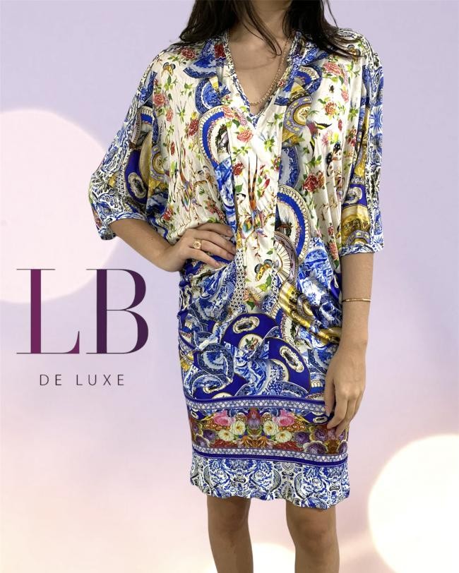 Confeccionado em 100% viscose. Tamanho 42 na etiqueta, mas confira as medidas aproximadas: comprimento = 95 cm, cintura = 82 cm, quadril = 76 cm. Códigos 170/96A TPT (1) JFM29. Forro preso no vestido, só na parte de baixo. Soltinho em cima, o vestido vai afunilando. Peça assinada. Lindo e impecável.
