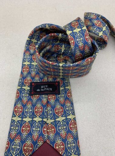 ORIGEM FRANÇA – Confeccionada em 100% seda. tons de azul, vermelho e amarelo. Comprimento = 148 cm. Impecável !